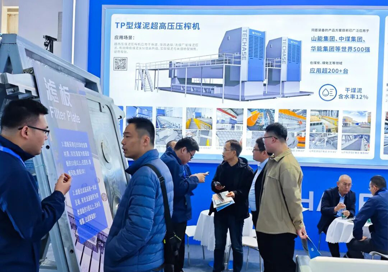 On the first day of the event, the venue was extremely popular. The Techase booth attracted visitors from all over the country to stop and inquire. With enthusiastic and professional explanations from the staff, the atmosphere on site was lively. While experiencing the charm of intelligent equipment technology, we will jointly explore new trends in industry development. As an innovator of intelligent equipment technology in the field of resource utilization, Techase has continued to work hard in the field of coal. More than 200 sets of slime/gasification slag resource-based system solutions have been introduced in the industry, which has been widely used in the world's top 500 enterprises such as Shanneng Group, middling coal Group, Huaneng Group, and so on, helping the coal industry improve quality and efficiency, and promote resource utilization.